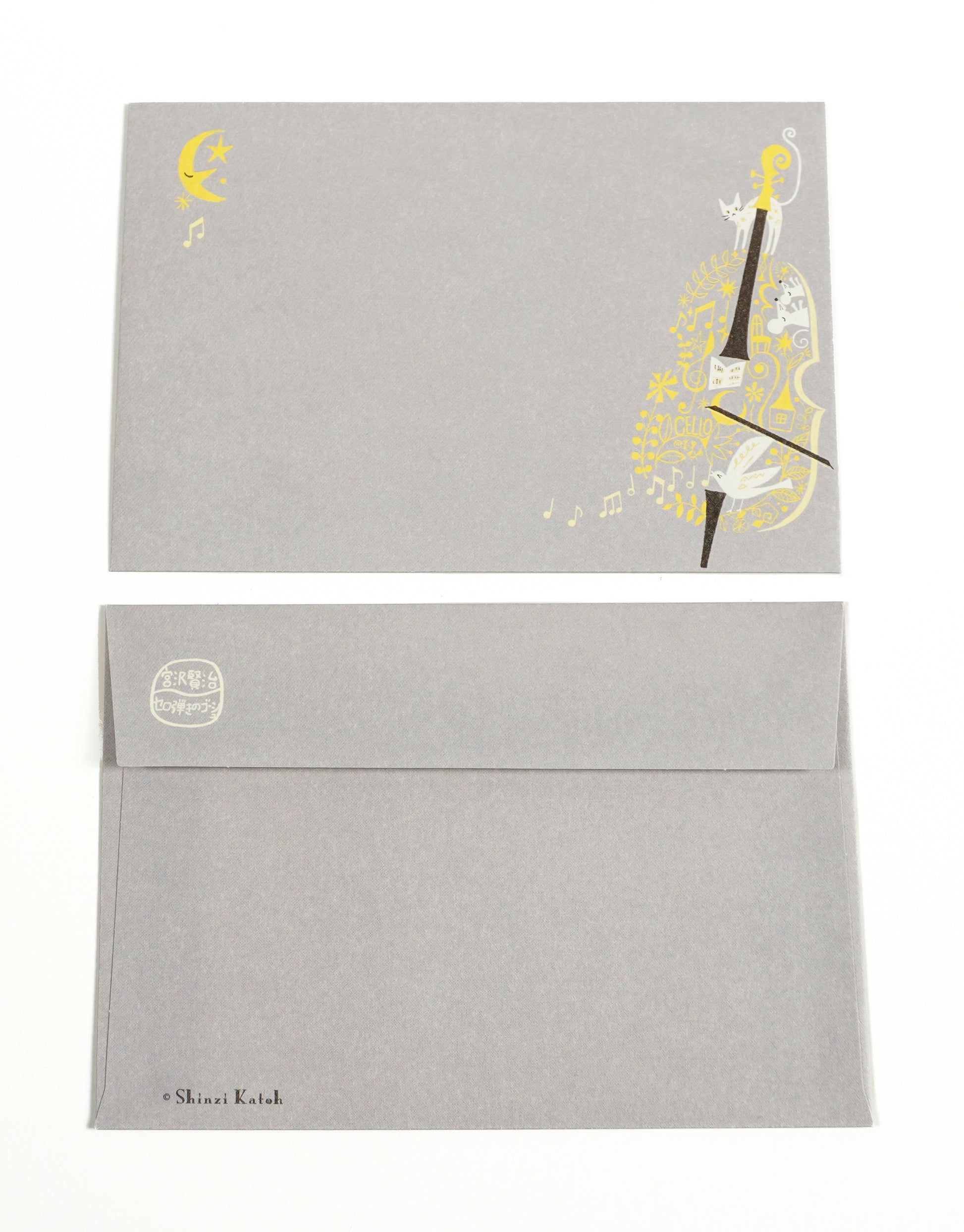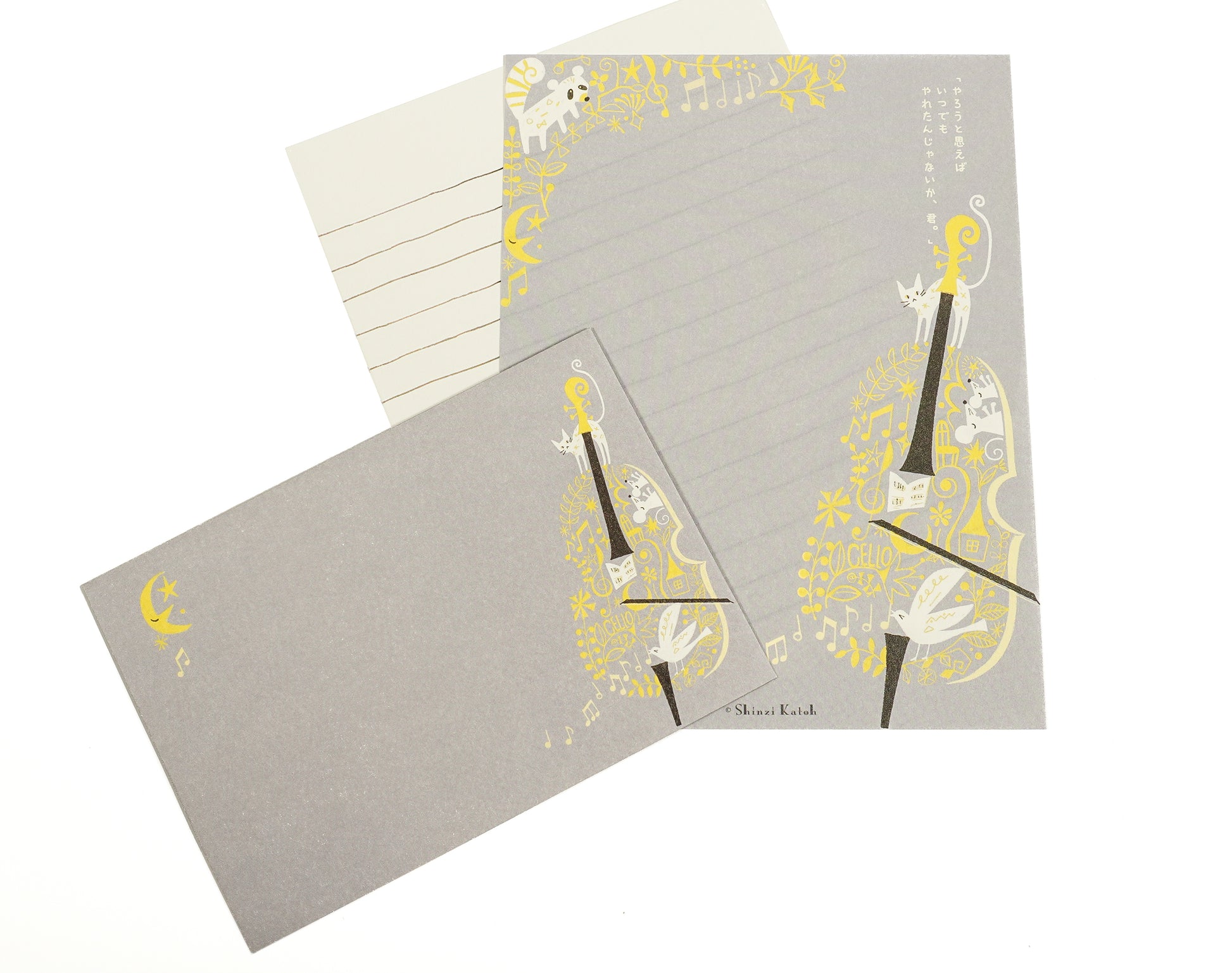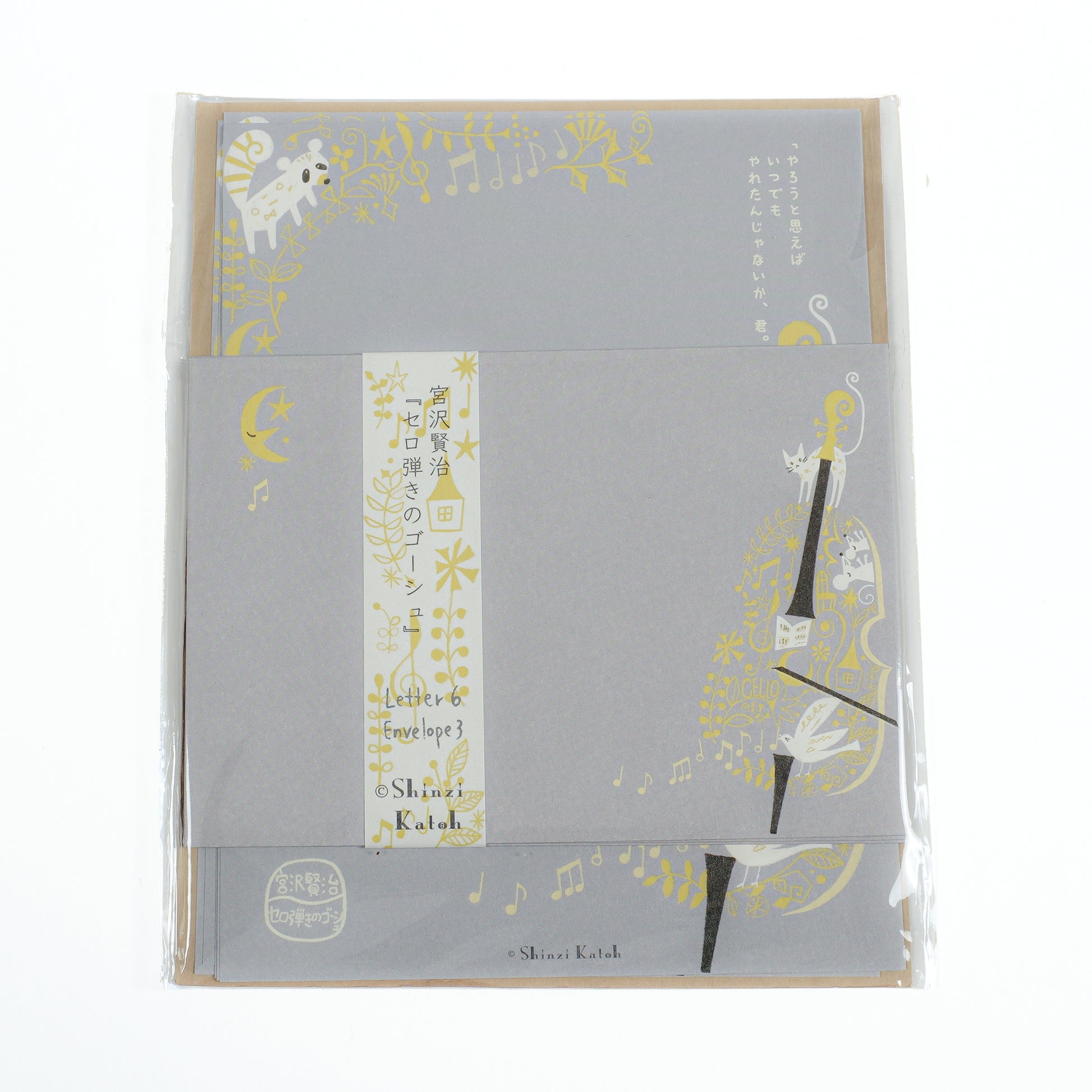 Dieses Letter-Set bringt die liebenswerte Geschichte von Kenji Miyazawa, „Gōshu, der Cellist" (セロ弾きのゴーシュ), durch die freundlichen, herzerwärmenden Illustrationen von Shinzi Katoh zum Leben. Erzählt wird die Geschichte des jungen Cellisten Gōshu, der fleißig übt, und der niedlichen Tiere, die ihn besuchen – dargestellt in weichen, charmanten Farben.